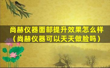 尚赫仪器面部提升效果怎么样(尚赫仪器可以天天做脸吗)