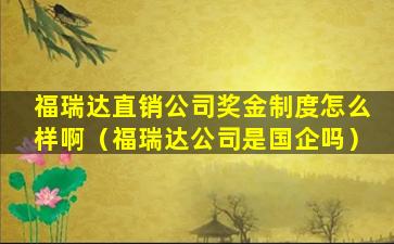 福瑞达直销公司奖金制度怎么样啊(福瑞达公司是国企吗)