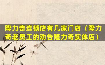 1、隆力奇连锁店有几家门店