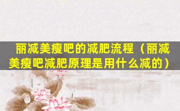 丽减美瘦吧的减肥流程(丽减美瘦吧减肥原理是用什么减的)