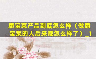 康宝莱产品到底怎么样(做康宝莱的人后来都怎么样了)