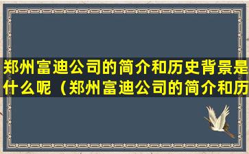 郑州富迪公司的简介和历史背景是什么呢(郑州富迪公司的简介和历史背景是什么呢英文)