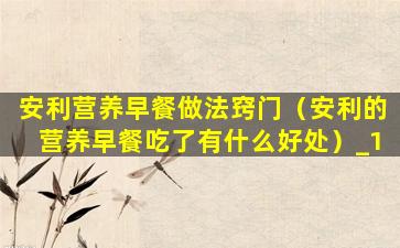 安利营养早餐做法窍门(安利的营养早餐吃了有什么好处)