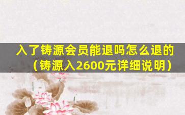 入了铸源会员能退吗怎么退的(铸源入2600元详细说明)