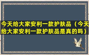 今天给大家安利一款护肤品(今天给大家安利一款护肤品是真的吗)