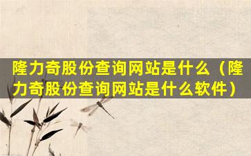 隆力奇股份查询网站是什么(隆力奇股份查询网站是什么软件)