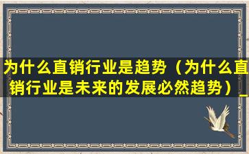 为什么直销行业是趋势(为什么直销行业是未来的发展必然趋势)