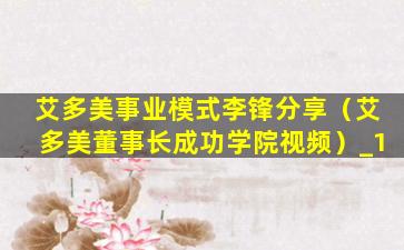 艾多美事业模式李锋分享(艾多美董事长成功学院视频)