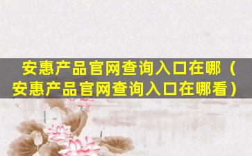 安惠产品官网查询入口在哪(安惠产品官网查询入口在哪看)