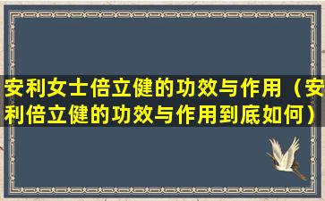 安利女士倍立健的功效与作用(安利倍立健的功效与作用到底如何)