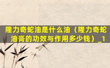 隆力奇蛇油是什么油(隆力奇蛇油膏的功效与作用多少钱)