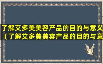 了解艾多美美容产品的目的与意义(了解艾多美美容产品的目的与意义是什么)