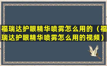 福瑞达护眼精华喷雾怎么用的(福瑞达护眼精华喷雾怎么用的视频)