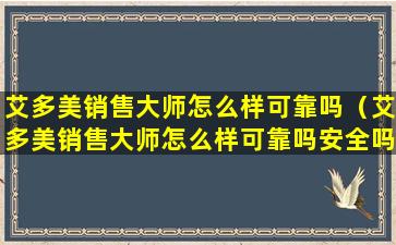 艾多美销售大师怎么样可靠吗(艾多美销售大师怎么样可靠吗安全吗)