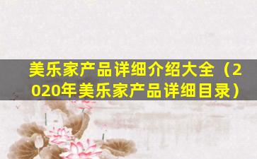 美乐家产品详细介绍大全(2020年美乐家产品详细目录)
