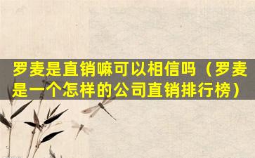 罗麦是直销嘛可以相信吗(罗麦是一个怎样的公司直销排行榜)