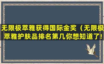 无限极萃雅获得国际金奖(无限极萃雅护肤品排名第几你想知道了!)