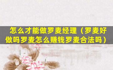怎么才能做罗麦经理(罗麦好做吗罗麦怎么赚钱罗麦合法吗)