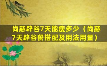 尚赫辟谷7天能瘦多少(尚赫7天辟谷餐搭配及用法用量)