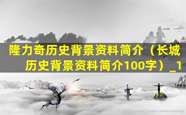 隆力奇历史背景资料简介(长城历史背景资料简介100字)