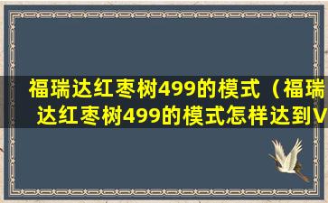 福瑞达红枣树499的模式(福瑞达红枣树499的模式怎样达到V2)