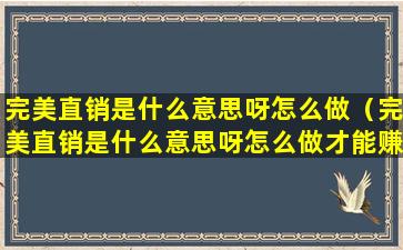 完美直销是什么意思呀怎么做(完美直销是什么意思呀怎么做才能赚钱)