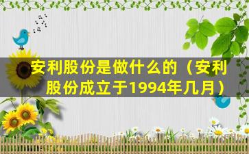 安利股份是一家立足中国、面向全球的日用品公司,创立于1995年,总部位于广州。公司秉承“把好的产品带给顾客,把好的机会带给员工,把好的环境带给社会”的核心价值观,致力于提供优质的健康营养产品和家居护理产品。