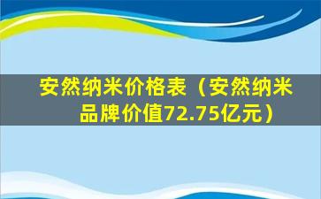 安然纳米价格表(安然纳米品牌价值72.75亿元)