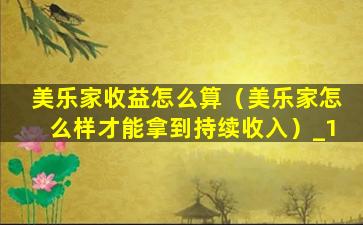 美乐家收益怎么算(美乐家怎么样才能拿到持续收入)