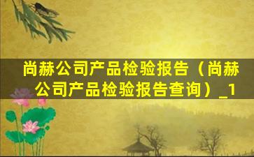 尚赫公司产品检验报告(尚赫公司产品检验报告查询)
