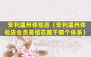 安利温州体验店(安利温州体验店会员葛信芯属于哪个体系)