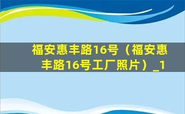 福安惠丰路16号(福安惠丰路16号工厂照片)
