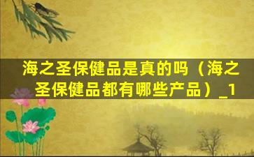 1、海之圣保健品是真的吗