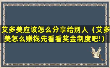 艾多美应该怎么分享给别人(艾多美怎么赚钱先看看奖金制度吧!)