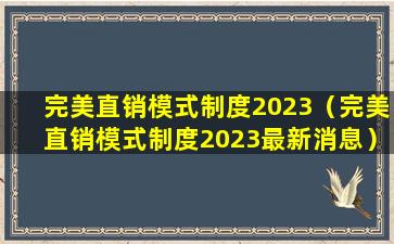 完美直销模式制度2023(完美直销模式制度2023最新消息)