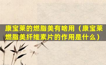 康宝莱的燃脂美有啥用(康宝莱燃脂美纤维素片的作用是什么)