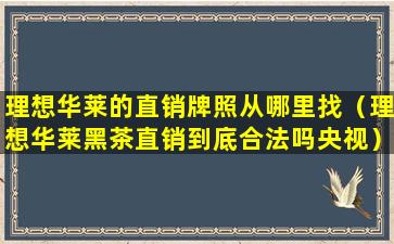 理想华莱的直销牌照从哪里找(理想华莱黑茶直销到底合法吗央视)