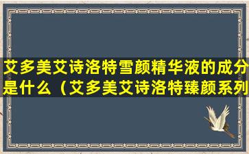 艾多美艾诗洛特雪颜精华液的成分是什么(艾多美艾诗洛特臻颜系列套装使用方法)