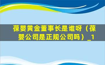 葆婴黄金董事长是谁呀(葆婴公司是正规公司吗)
