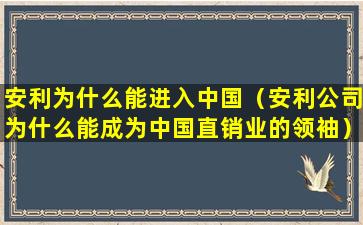 安利为什么能进入中国(安利公司为什么能成为中国直销业的领袖)