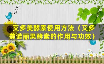 艾多美酵素使用方法