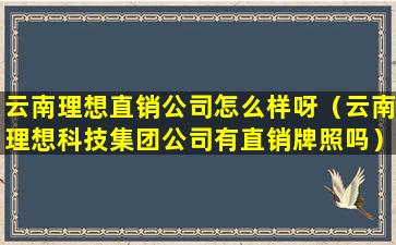 云南理想直销公司怎么样呀(云南理想科技集团公司有直销牌照吗)