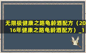 无限极健康之路龟龄酒配方(2016年健康之路龟龄酒配方)