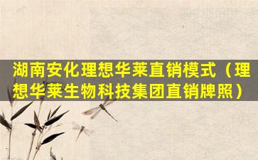 湖南安化理想华莱直销模式(理想华莱生物科技集团直销牌照)