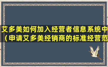 艾多美如何加入经营者信息系统中(申请艾多美经销商的标准经营范围)