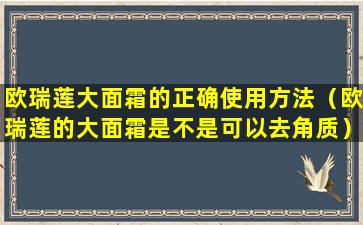 欧瑞莲大面霜的正确使用方法(欧瑞莲的大面霜是不是可以去角质)