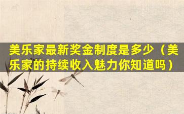 美乐家最新奖金制度是多少(美乐家的持续收入魅力你知道吗)