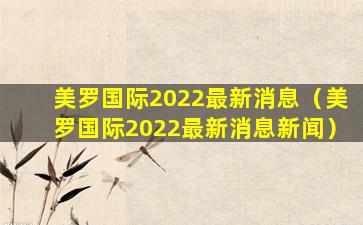 美罗国际2022最新消息(美罗国际2022最新消息新闻)