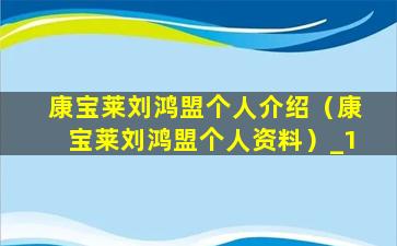 康宝莱刘鸿盟个人介绍(康宝莱刘鸿盟个人资料)