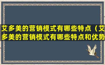 艾多美的营销模式有哪些特点(艾多美的营销模式有哪些特点和优势)